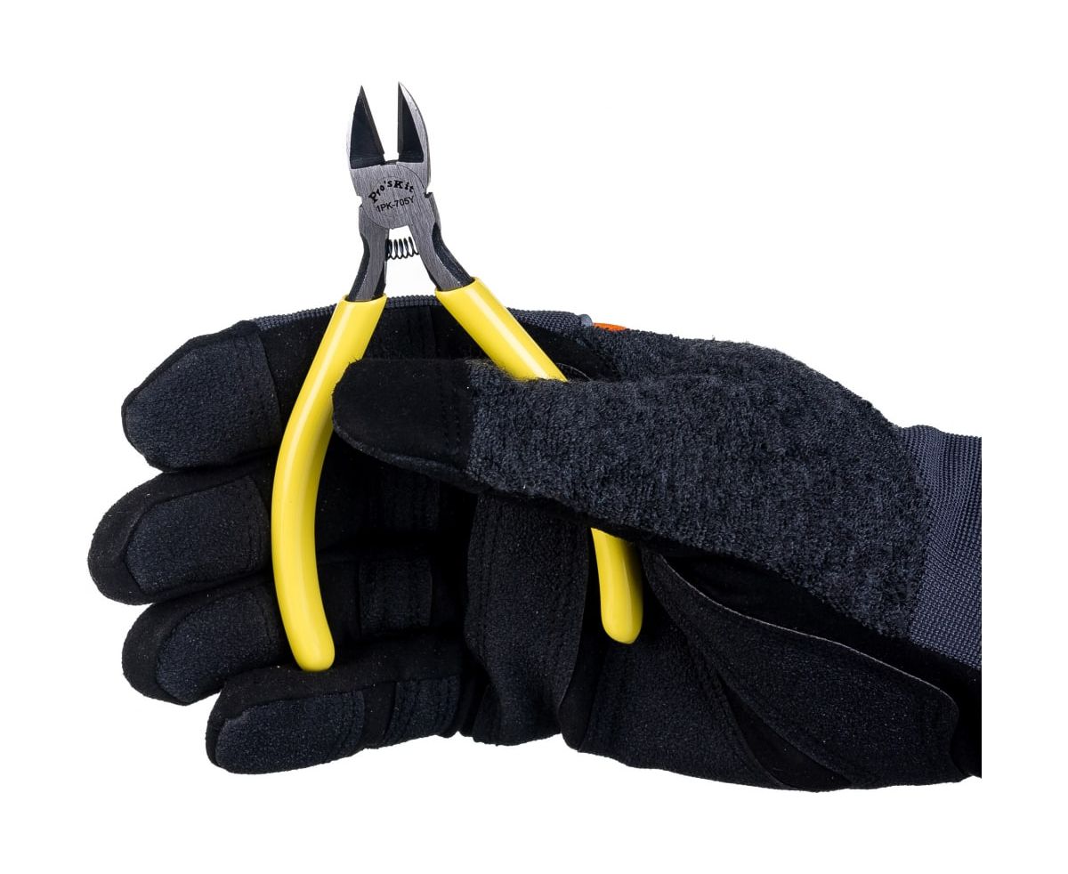Кусачки ProsKit 1PK-705Y 00223507 оснащаются возвратной пружиной для раскрытия губок после совершения операции.