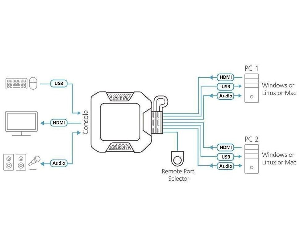 KVM-переключатель Aten CS22H-AT 2-Port USB 4K HDMI Cable KVM Switch
