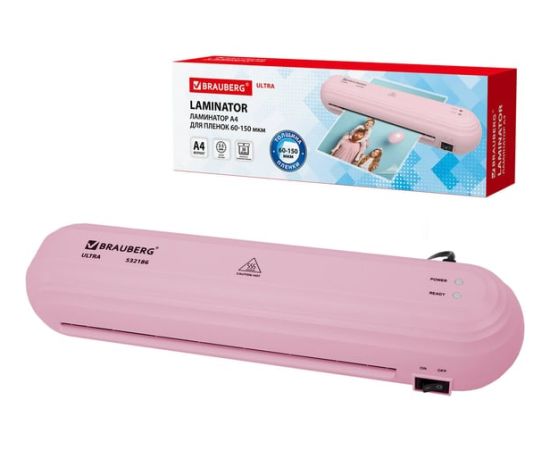 Ламинатор BRAUBERG Ultra PM235P 532186 A4, толщина пленки 60-150мкм, скорость 30см/мин розовый