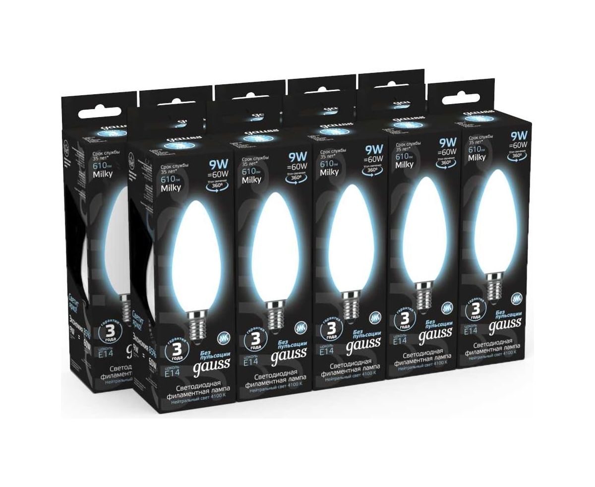 Лампа GAUSS E14 103201209 свеча 9Вт упаковка 10 шт.
