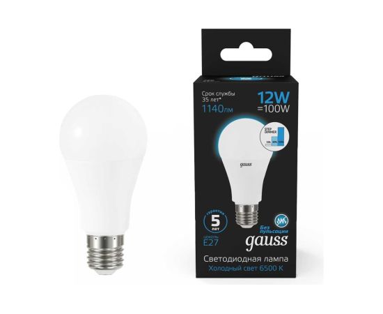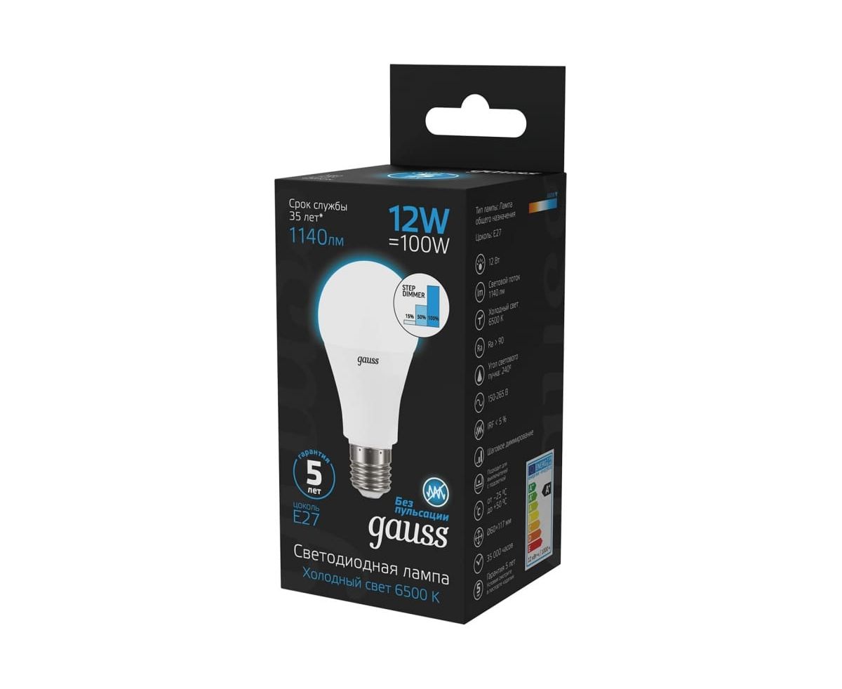 Технические характеристики Gauss A60 12W 1140lm 6500K Е27 шаговое диммирование LED 102502312-S
