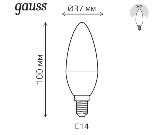 Технические характеристики Gauss Smart LED, свеча, С37, 6W, E14, RGBW+dim 103101406