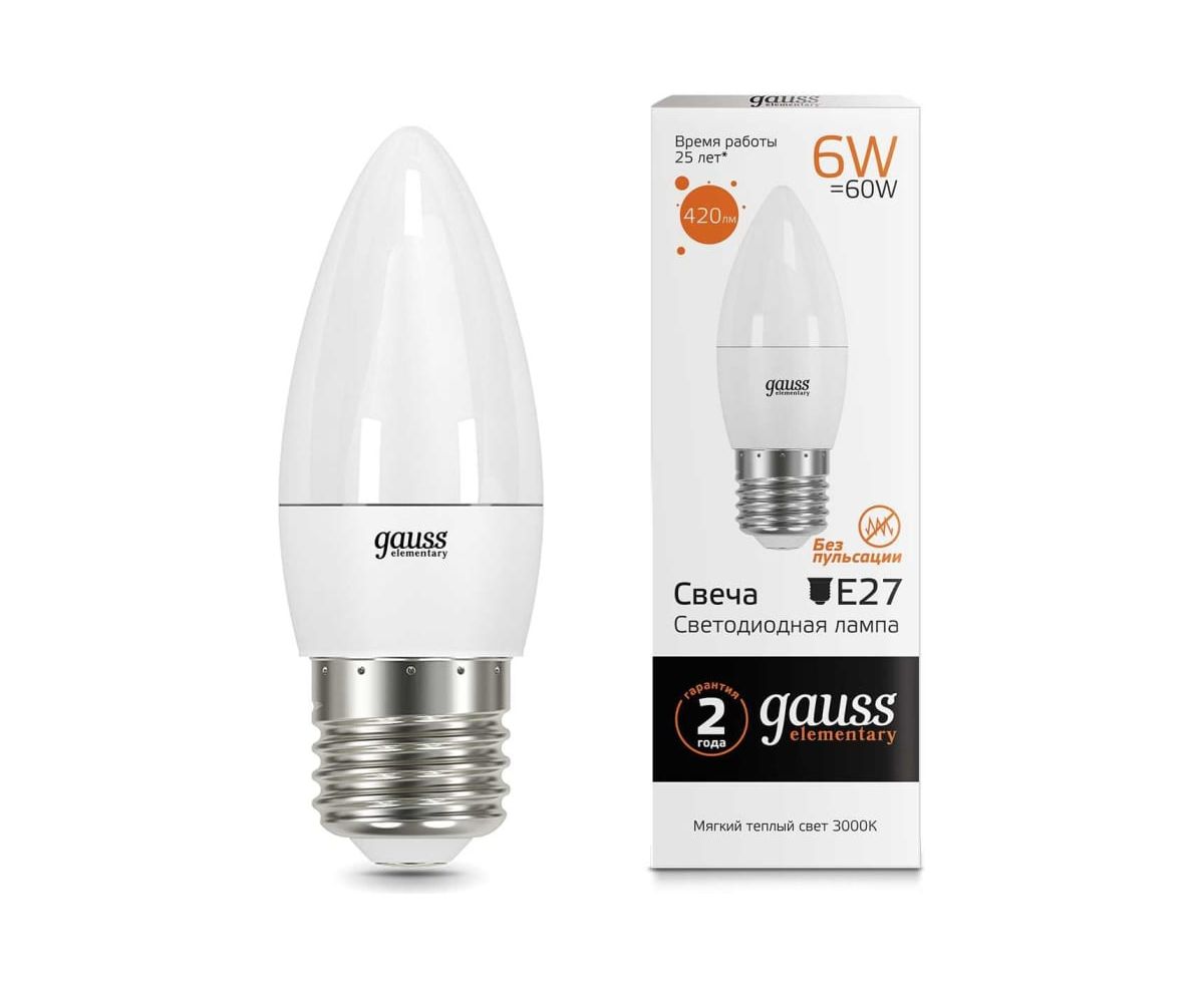 Технические характеристики Gauss LED Elementary Candle 6W E27 2700K 33216