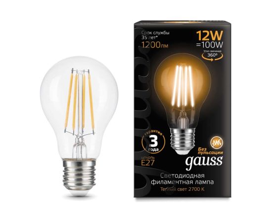 Технические характеристики Gauss Filament А60 12W 1200lm 2700К Е27 LED 102902112