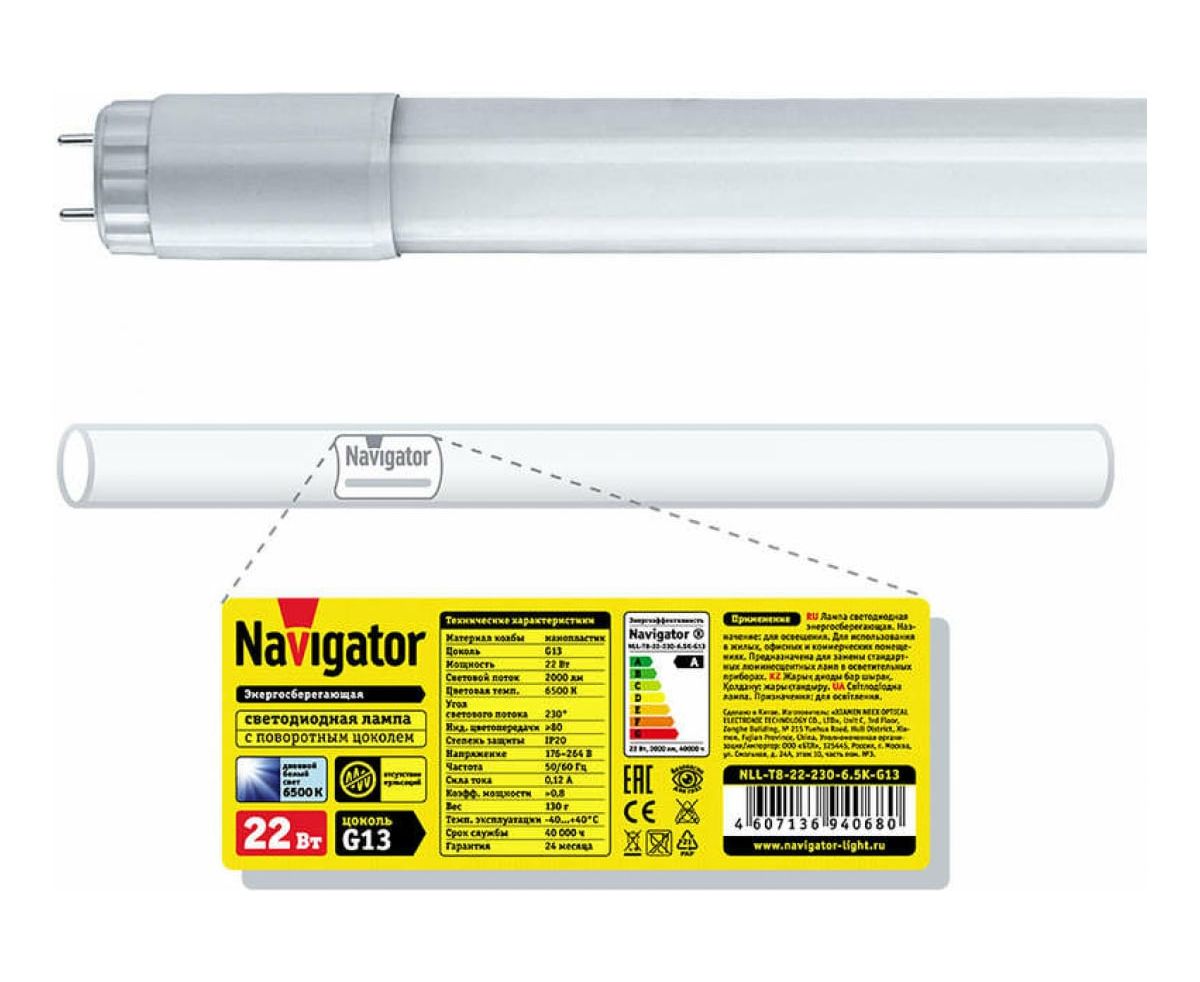 Технические характеристики Navigator NLL-T8-22-230-6.5K-G13 22Вт 6500К холод. бел. 94068 286586