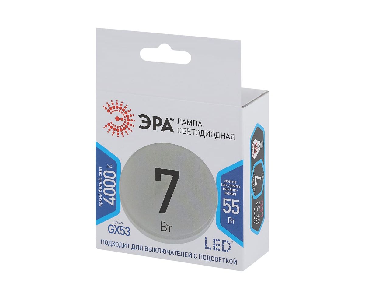 Лампочка Эра LED GX-7W-840-GX53 (диод, таблетка, 7Вт, нейтр, GX53) (10/100/3600) (Б0017232)