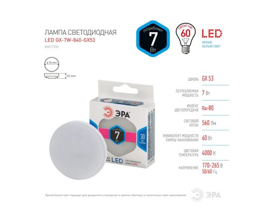 Технические характеристики ЭРА LED smd GX-7w-840-GX53 Б0017232