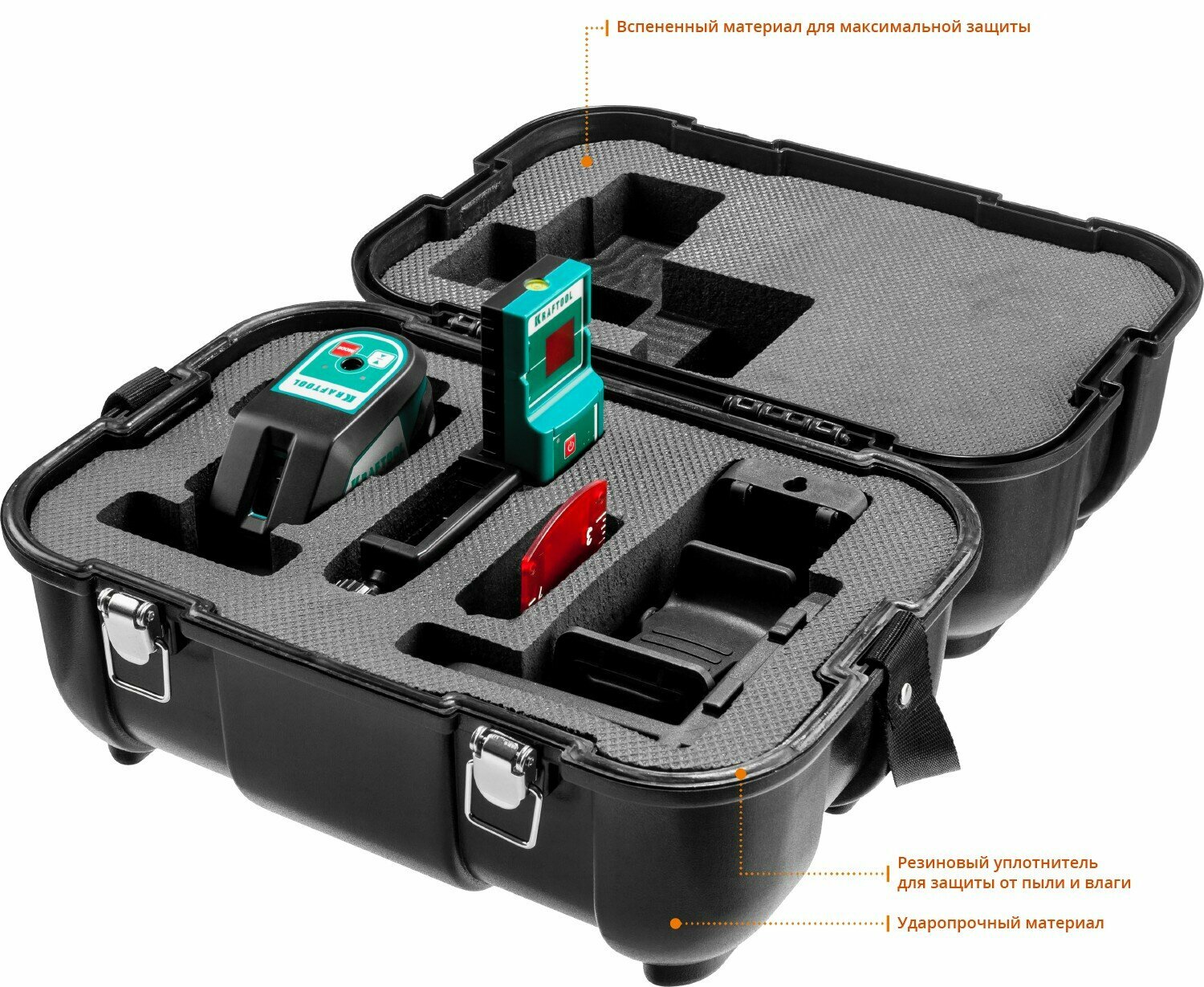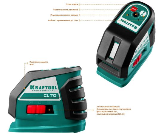 Лазерный линейный нивелир KRAFTOOL CL-70-4 34660-4 удобен для измерений как внутри, так и снаружи помещений. Имеет три режима работы: автоматическое выравнивание, построение наклонных линий, использование с детектором. Поставляется с дополнительными принадлежностями в кейсе, что решает вопрос хранения и транспортировки.