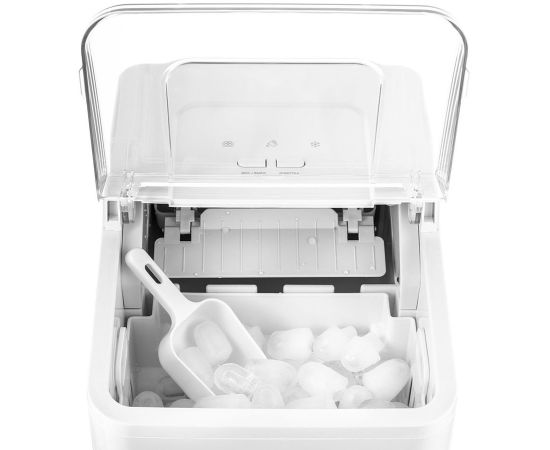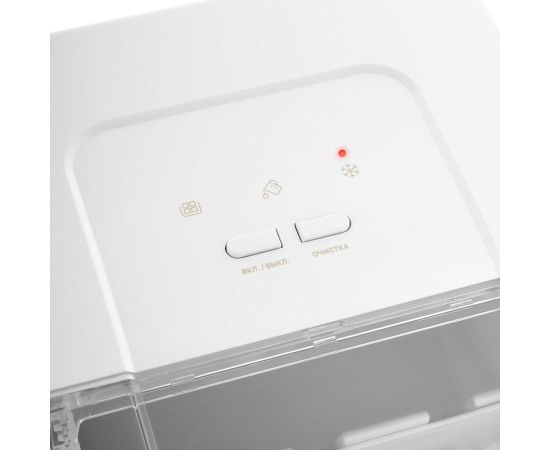 Благодаря инфракрасному датчику заполнения корзины, при её переполнении генерация льда автоматически прекращается. В случае, если лёд достали, льдогенератор запускает цикл заново, пока корзина не будет заполнена. В комплекте идёт совок для черпания льда.