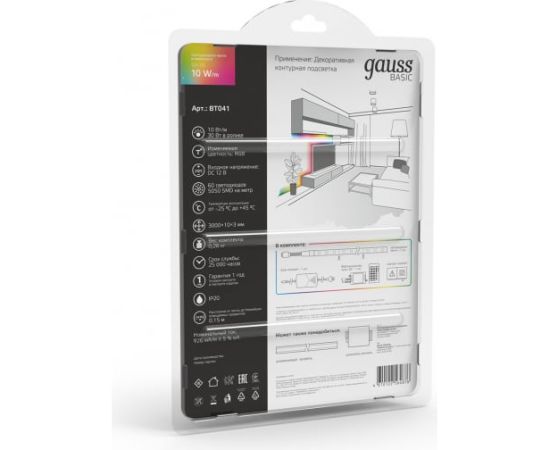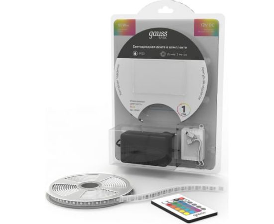 Лента Gauss Basic в комплекте 12V 10W/m 700lm/m RGB IP20 LED 3m BT041 способна решить ряд задач связанных как с декоративным освещением помещений, так и с экстерьерной подсветкой.