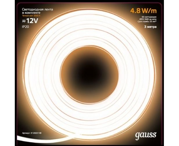 Лента светодиодная Gauss SMD 312000148 3м