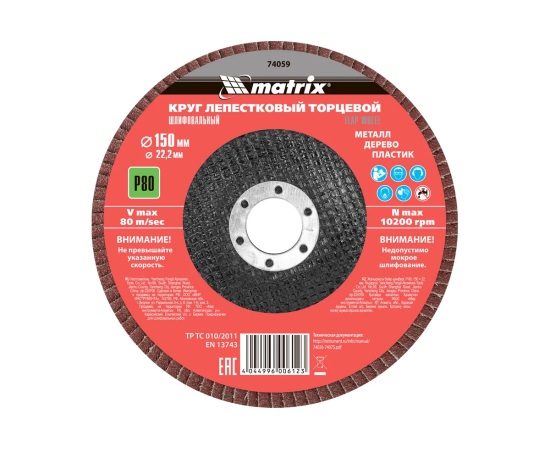 Лепестковый шлифкруг MATRIX 74059 по алюминию, дереву, пластику, 150мм, 22.2мм