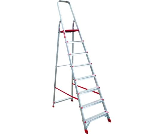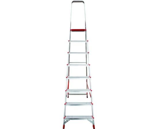 Стремянка отличается высоким уровнем безопасности, устойчивостью и надежностью. Имеет ступеньки шириной 80 мм с профилированной поверхностью для удобства работы. Лестница не занимает много места при хранении. Максимальна нагрузка для стремянки - 225 кг.