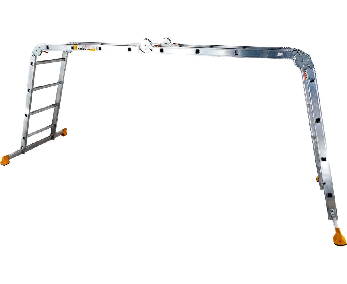 Лестница-трансформер Алюмет 4х4 TW1 444 подходит для строительства и ремонта на профессиональном уровне, а также для бытовых работ.