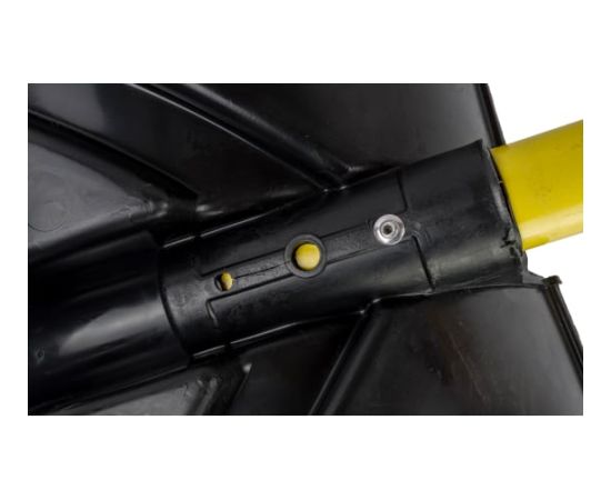 Пластмассовая лопата с оцинкованной планкой на заклепках, усиленная ребрами жесткости позволяет быстро убирать снег в большом количестве.
