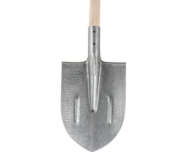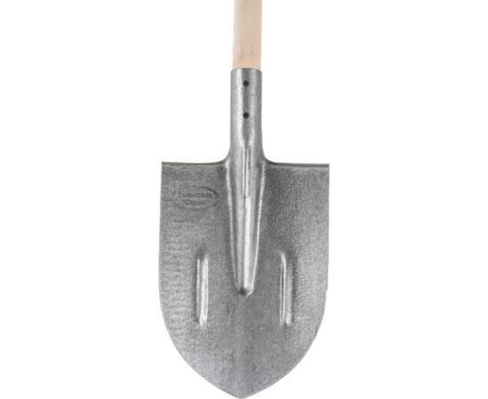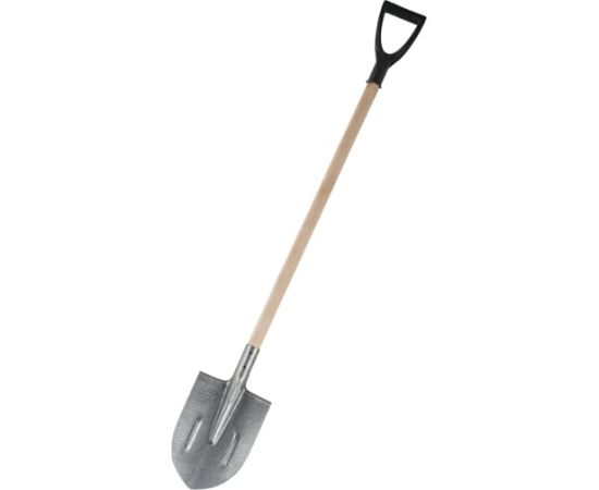 Штыковая лопата применяется для земельных работ. Рабочая часть имеет заостренную форму, которая обеспечивает легкое проникновение лопаты в грунт. Полотно выполнено из прочной рельсовой стали. Для удобства работы предусмотрен деревянный черенок с V-образной ручкой.