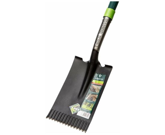 1.Зубчатая заостренная кромка VERTO 15G004 облегчает работу по обрезу корней и сложному грунту