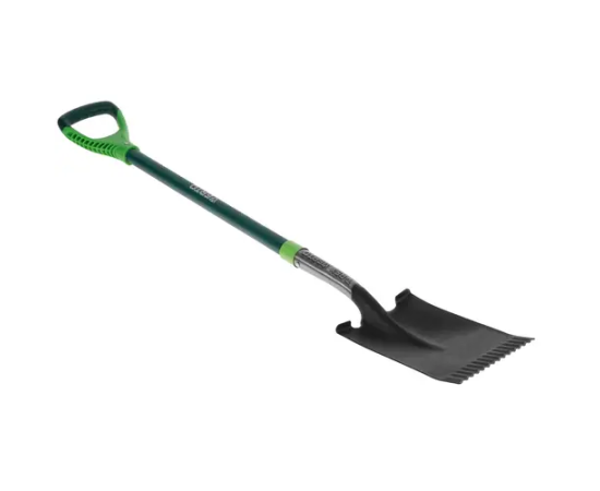 Наличие зазубренного штыка упрощает вхождение лопаты в грунт и корневую систему растений.