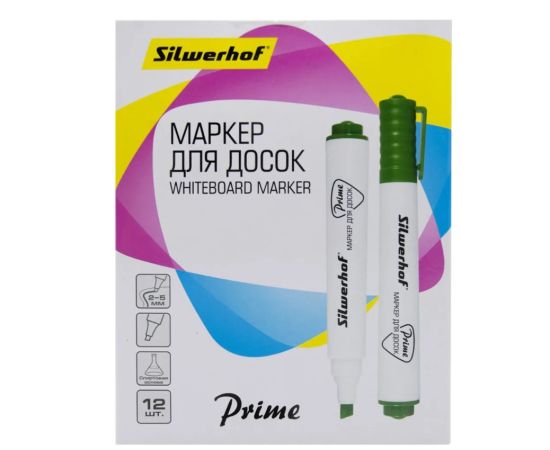 Маркер для досок Silwerhof Prime+ скошенный пиш. наконечник 2-5мм зеленый коробка