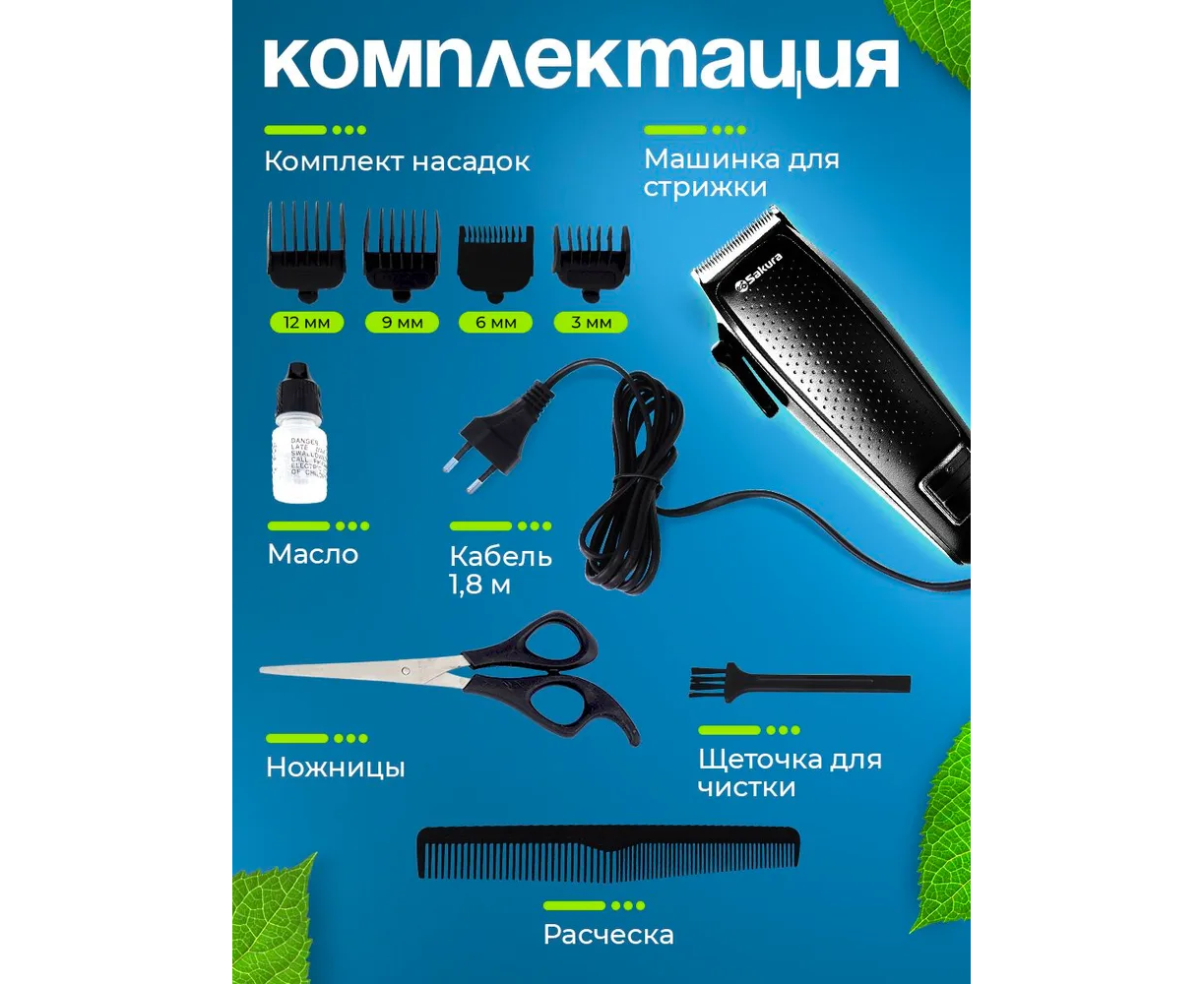 Машинка для стрижки Sakura SA-5116BK