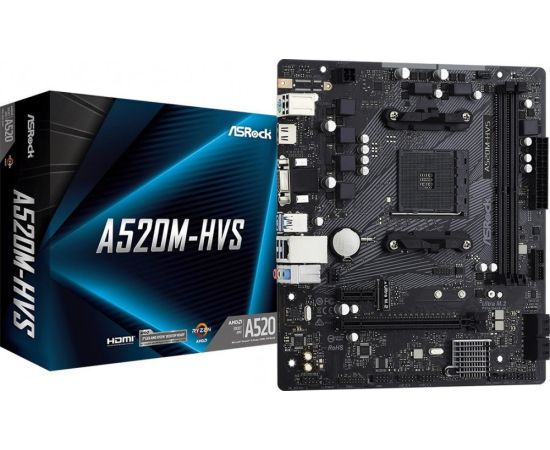 MB sAM4 Asrock A520M-HVS, mATX, AMD A520, 2xDDR4, 1xPCI-E3.0x16/2xPCI-E2.0x1, 4xSATA3/1xM.2, RTL8118AS GLAN, ALC887, 4xUSB3.1/2xUSB2.0, HDMI/DVI-D