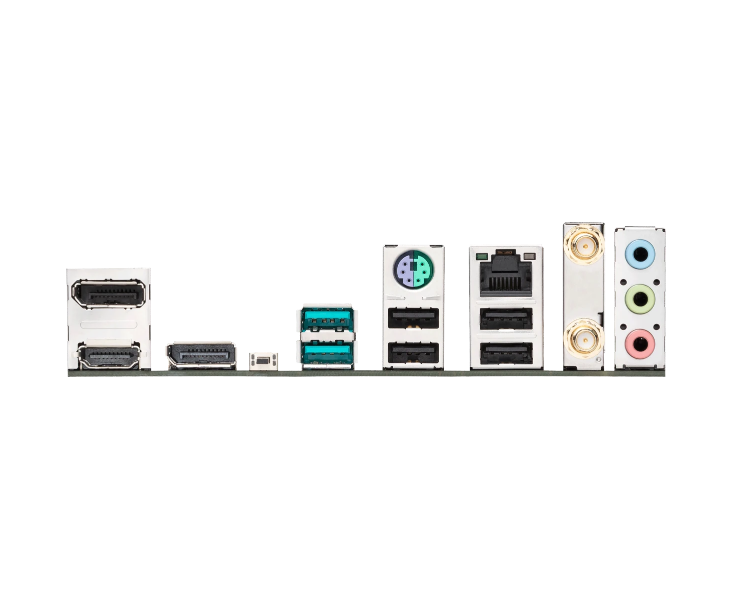 PS/2, 4 x USB 2.0, 2 x USB 3.2 Gen2, HDMI, 2 x DisplayPort, RJ-45