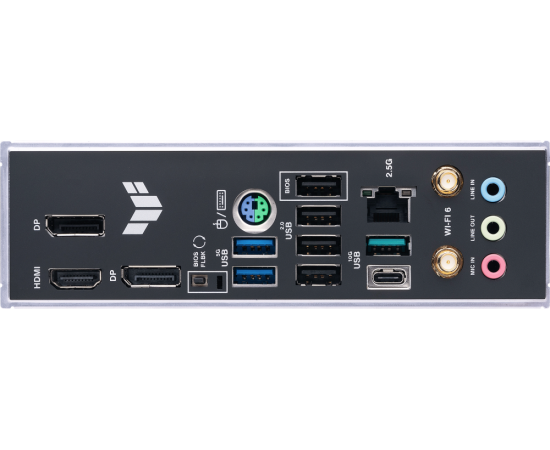 PS/2, 4 x USB 2.0, 2 x USB 3.2 Gen1, USB 3.2 Gen2, USB 3.2 Gen2 Type-C, HDMI, 2 x DisplayPort, RJ-45
