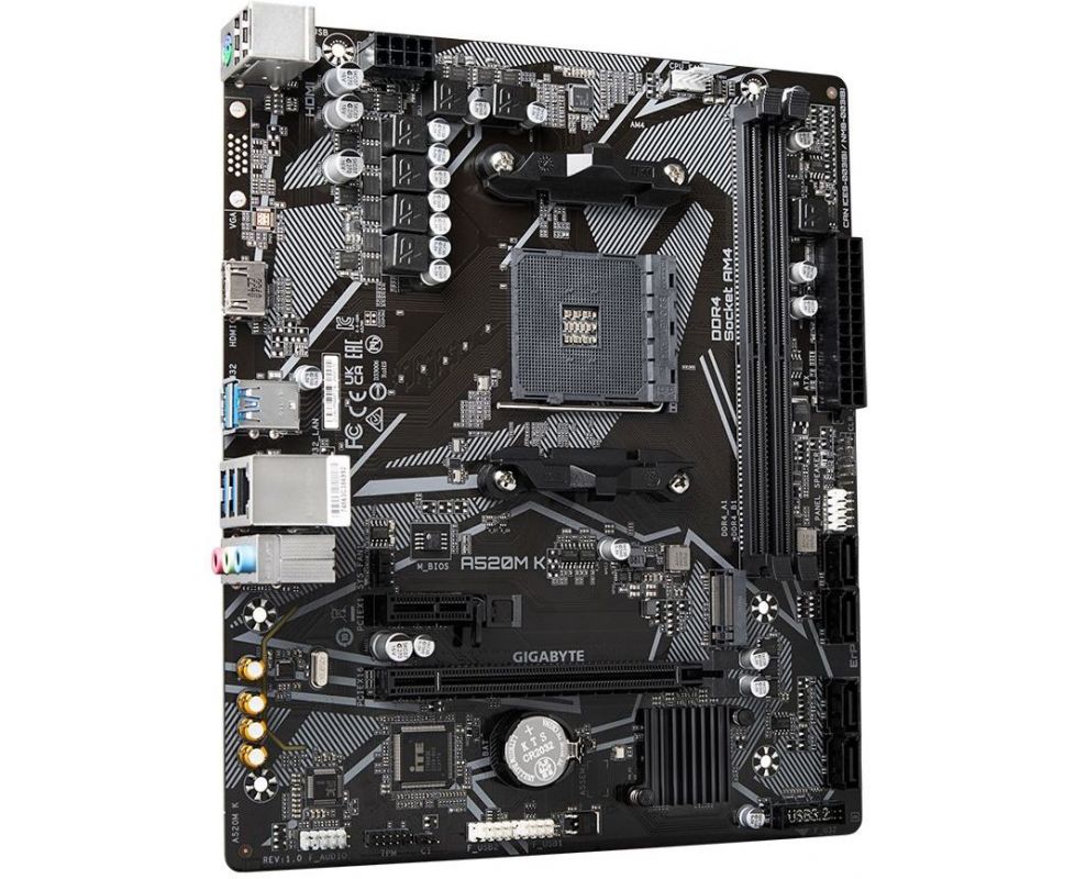 MB sAM4 Gigabyte A520M K V2, Socket AM4, AMD A520, 2xDDR4-3200, D-SUB+HDMI, 1xPCI-Ex16, 1xPCI-Ex1, 4xSATA3(RAID 0/1/10), 1xM.2, 8 Ch Audio, GLan, (2+4)xUSB2.0, (4+2)xU