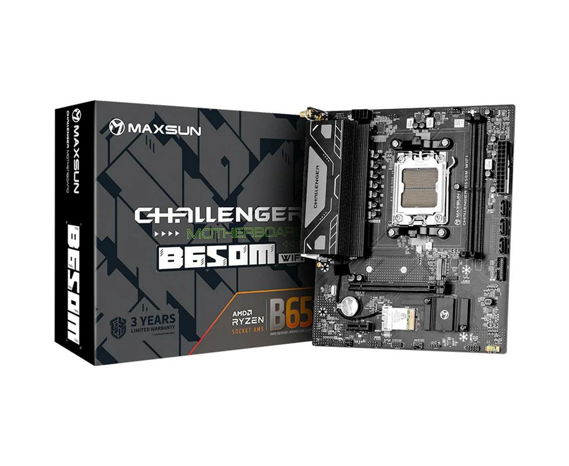 MB sAM5 Maxsun MS-Challenger B650M Wifi (6940709695456), AMD B650, 2xDDR5-4800 МГц, 1xPCI-Ex16, 1xM.2, Micro-ATX