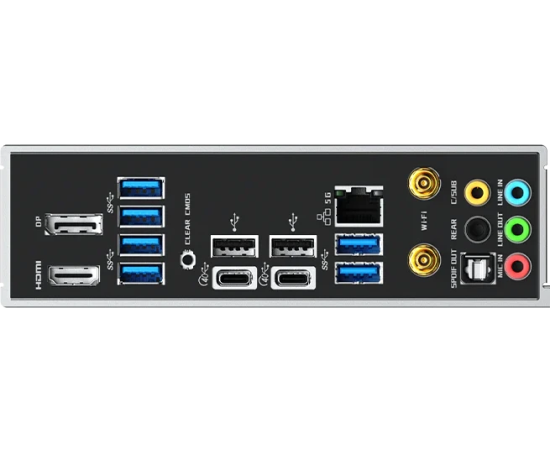 2 x USB 2.0, 6 x USB 3.2 Gen2, 2 x USB 4 Type-C, HDMI, DisplayPort, RJ-45, S/PDIF (оптический)