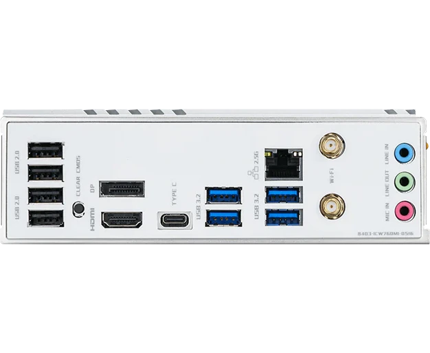 4 x USB 2.0, 4 x USB 3.2 Gen1, USB 3.2 Gen2x2 Type-C, HDMI, DisplayPort, RJ-45