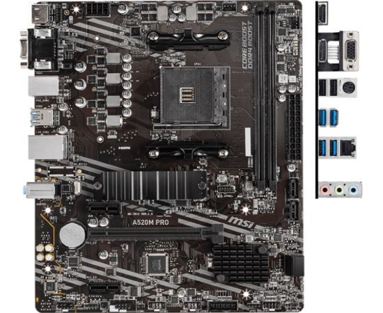 Материнская плата MSI A520M PRO, AMD A520, 2xDDR4-4600, HDMI/DP/VGA, 1xPCI-Ex16, 2xPCI-Ex1, 4xSATA3, 1xM.2, Glan, 6xUSB2.0, 6xUSB3.2, 1xPS/2