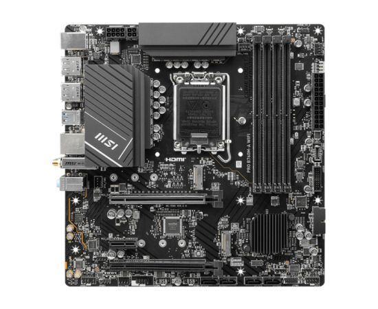 MB s1700 MSI Pro B760M-A WiFi, 4*DDR5, 2*PCIEx16, 1*PCIEx1, 2*M.2, 1*TypeC, 2*USB3.2Gen2, 6*USB3.2Gen1, 6*USB2.0, 4*SATA3.0, 2.5G, 2*DP, 2*HDMI, M-ATX