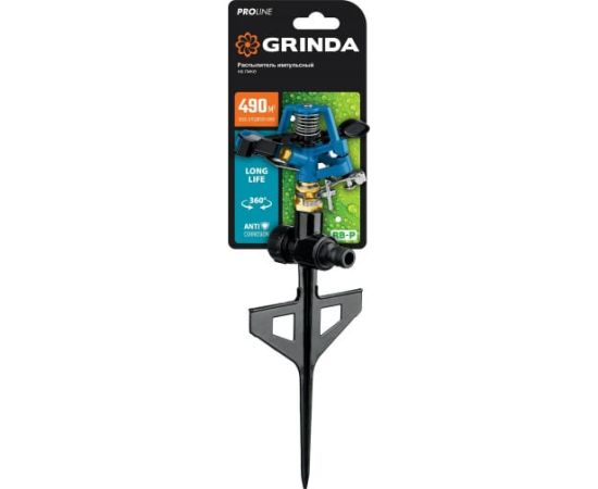 Металлический импульсный распылитель на пике Grinda PROLine RB-P 8-427653_z02 предназначен для стационарного полива насаждений на садовом и дачном участке площадью до 490 м2.