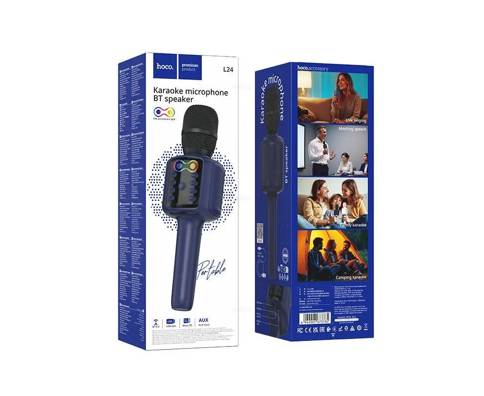 Микрофон HOCO L24 Shine karaoke microphone Blue
