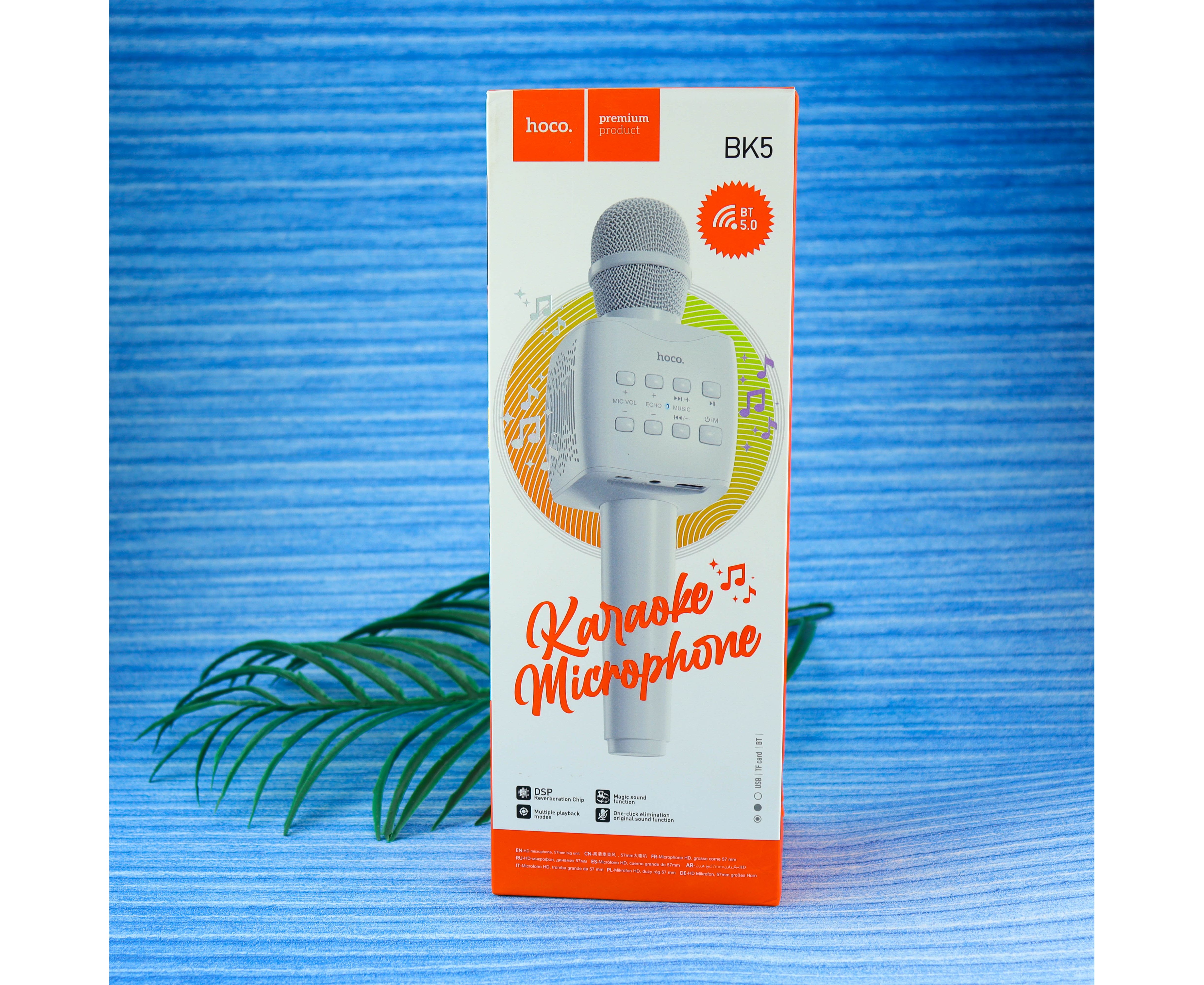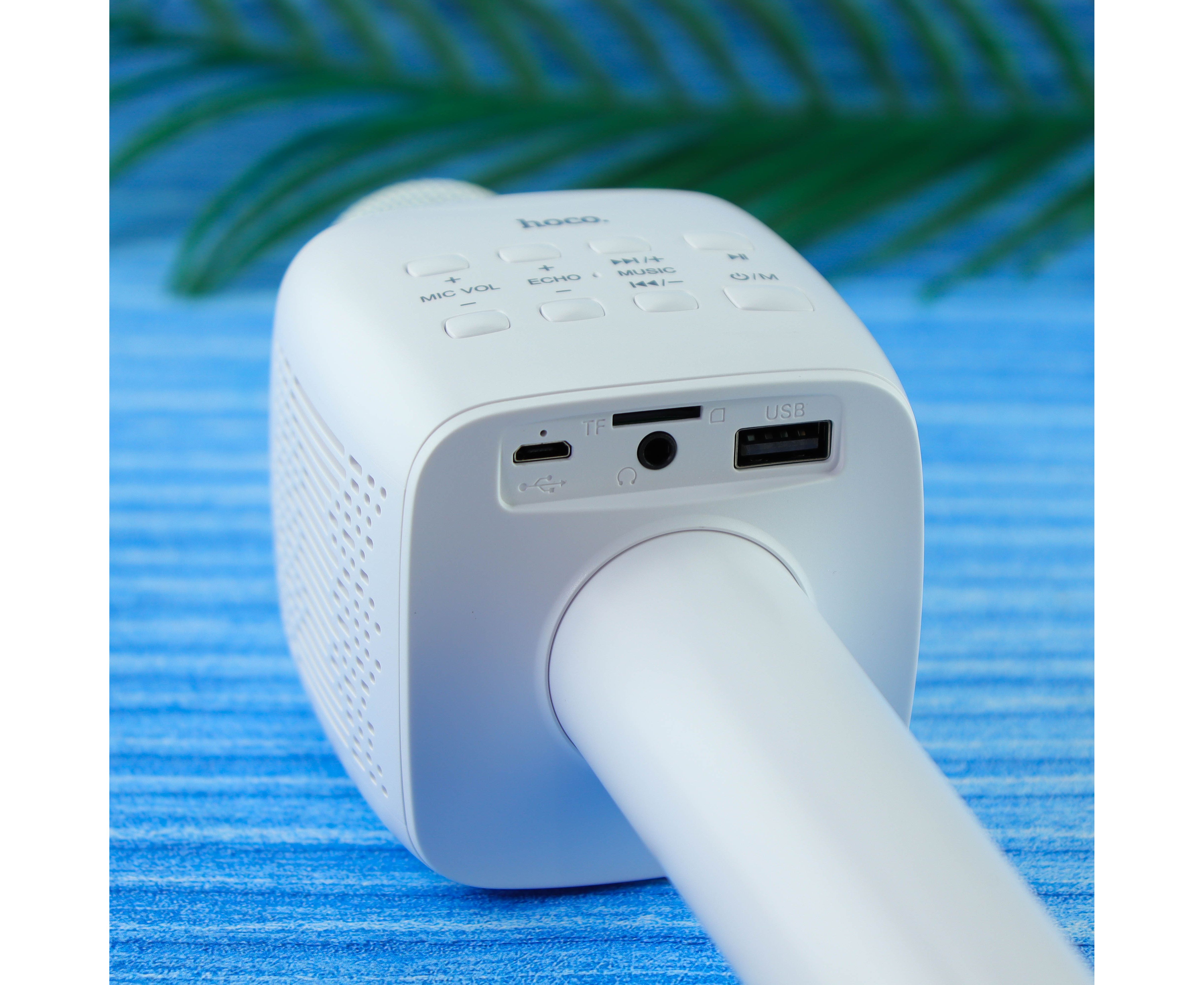 Многофункциональный микрофон HOCO BK5 Cantando BT V5.0, батарея 1200mAh для 6 часов работы, поддержка TF карт, USB накопителей, (белый)