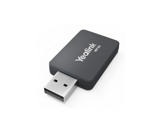 Yealink WF50 WiFi-адаптер предназначен для реализации функции беспроводной сети на SIP-телефонах, в которых отсутствует поддержка WiFi. Он позволяет SIP-телефону принимать сигнал от беспроводной сети. Работает в частотных диапазонах 2,4 ГГц и 5,0 ГГц.