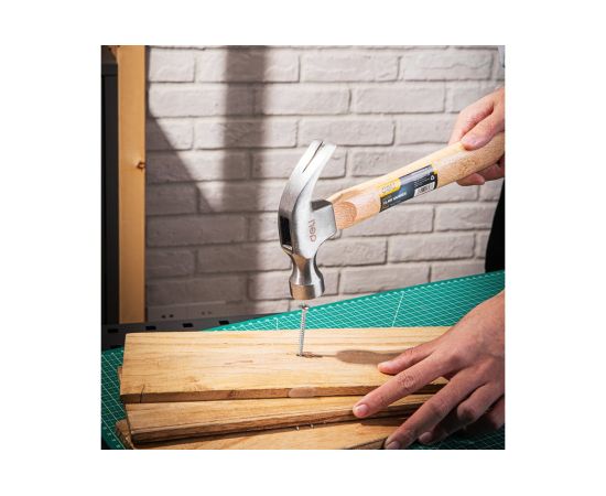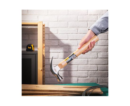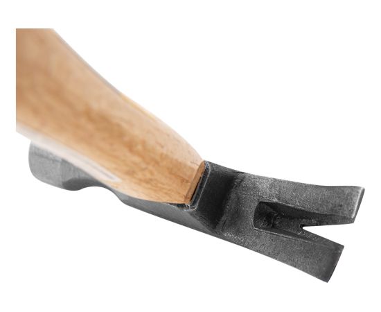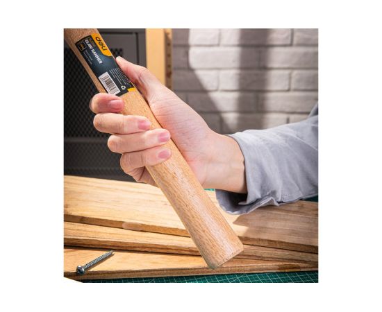Рукоять молотка выполнена из древесины, что не только обеспечивает надежный захват, но и делает инструмент более прочным и устойчивым к механическим повреждениям.