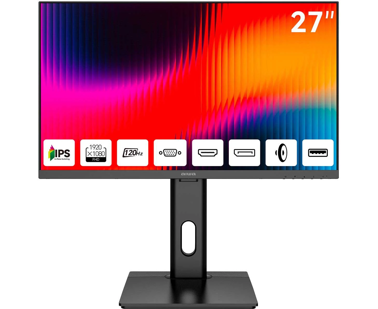 Монитор AIWA MF2711 Black IPS, 1920x1080, D-Sub+HDMI+DP, USB 3.0 1 in + 2 out, 4 ms, 178пр./178пр., 300 cd/m, 1000:1, 120Hz, Spk, Pivot, внутр БП