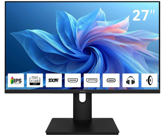 Монитор AIWA MQ271A Black IPS, 2560x1440, HDMI+DP+Type C 15W, 4 ms, 178пр./178пр., 300 cd/m, 1000:1, 100Hz, Spk, внутр БП