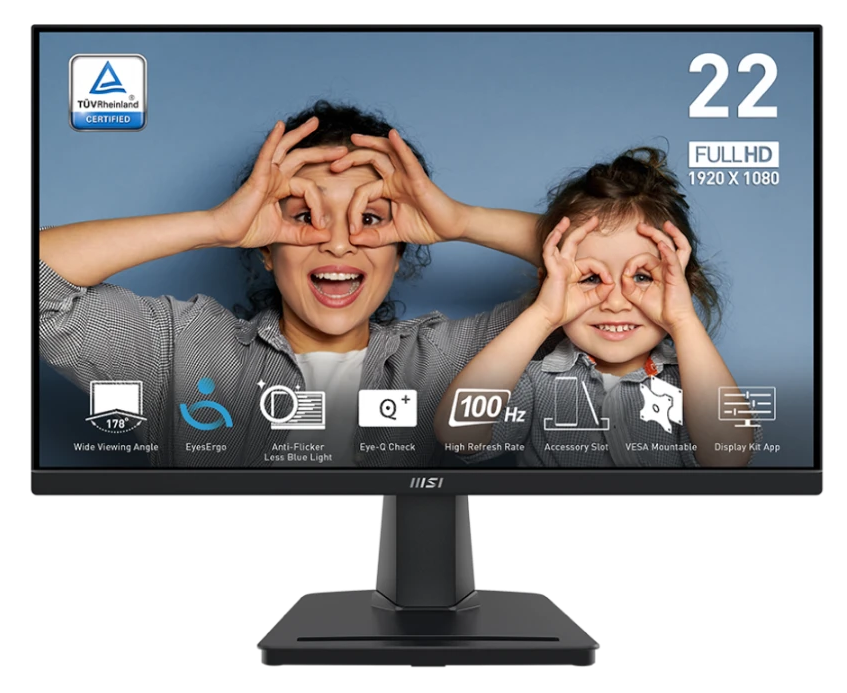 Монитор MSI Pro MP225V (9S6-3PE0CM-015) 21,45" 16:9 FHD(1920x1080) VA Flat, 1ms(MPRT),4000:1,100M:1,300nit,178/178,HDMI 1.4b,Tilt,VESA,100Hz,Black