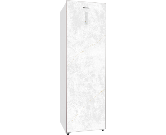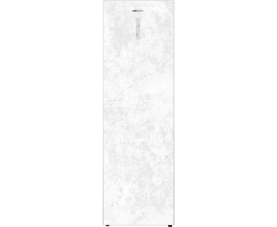Дверь морозильника имеет уникальный дизайн, выполнена из закаленного стекла цвета «белый мрамор». Дверь можно перенавесить с правой стороны на левую. Для легкого открывания в модели предусмотрена функция автооткрытия стуком — необходимо постучать по верхней части поверхности более двух раз, и дверь морозильника приоткроется.