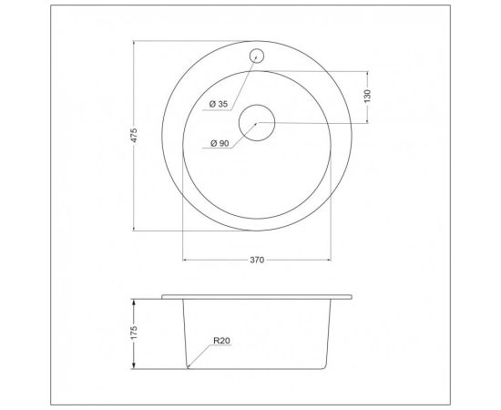 Размеры мойки, мм d475 мм