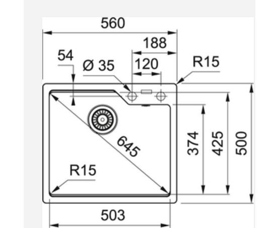 Вырез под мойку 52.4 x 46.4 см