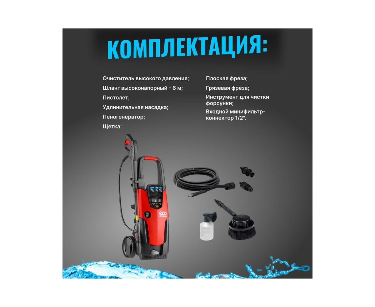 Мойка высокого давления ECO HPW1521S0001 применяется для очистки фасадов зданий, садовых дорожек и внедорожников.