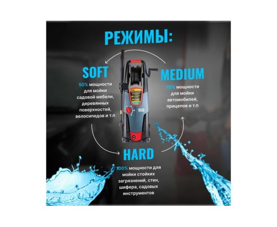 - Регулировка мощности (3 режима: Soft, Medium, Hard)