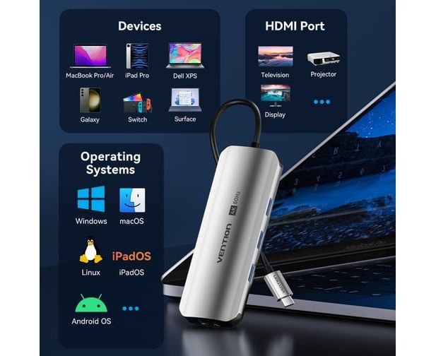 Мультифункциональный хаб Vention TQKHB USB Type C 8 в 1