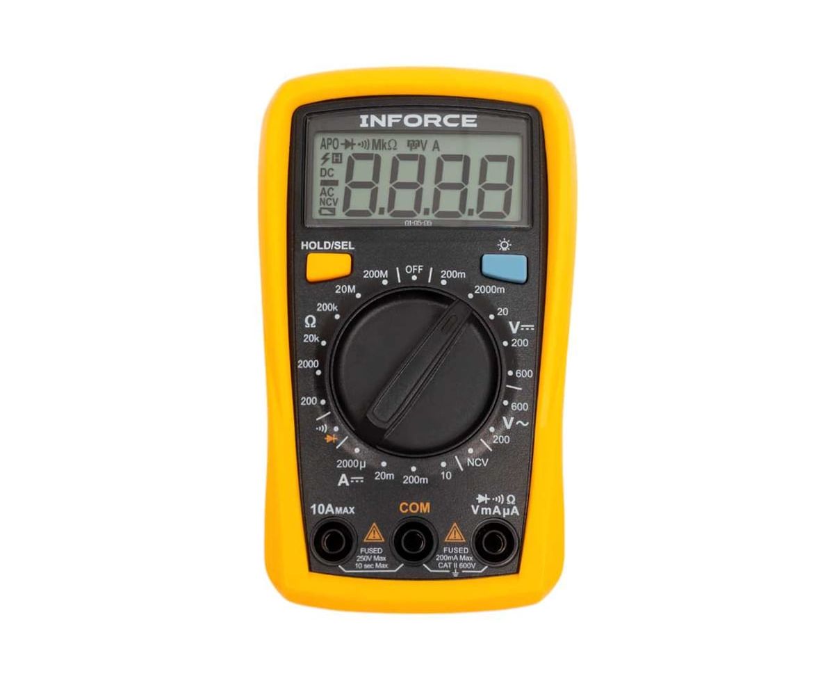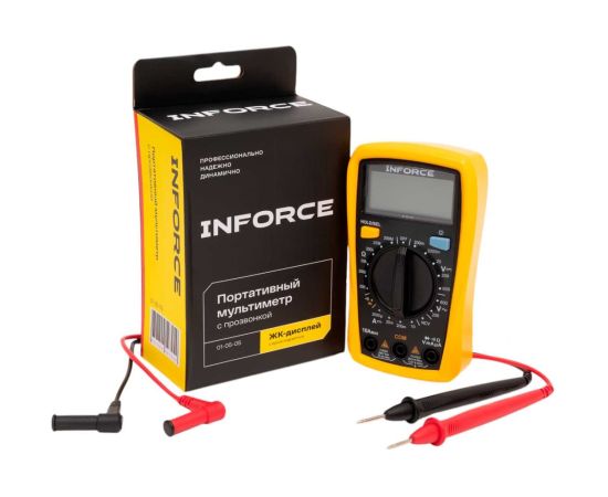 Портативный мультиметр Inforce + прозвонка 01-05-05 позволяет измерить постоянное и переменное напряжение, постоянный ток и сопротивление.