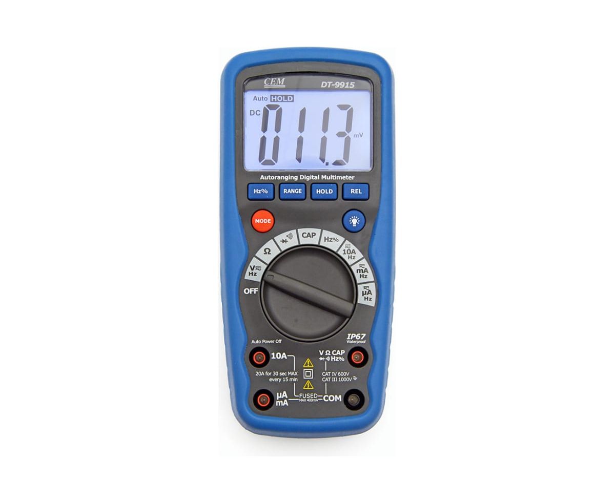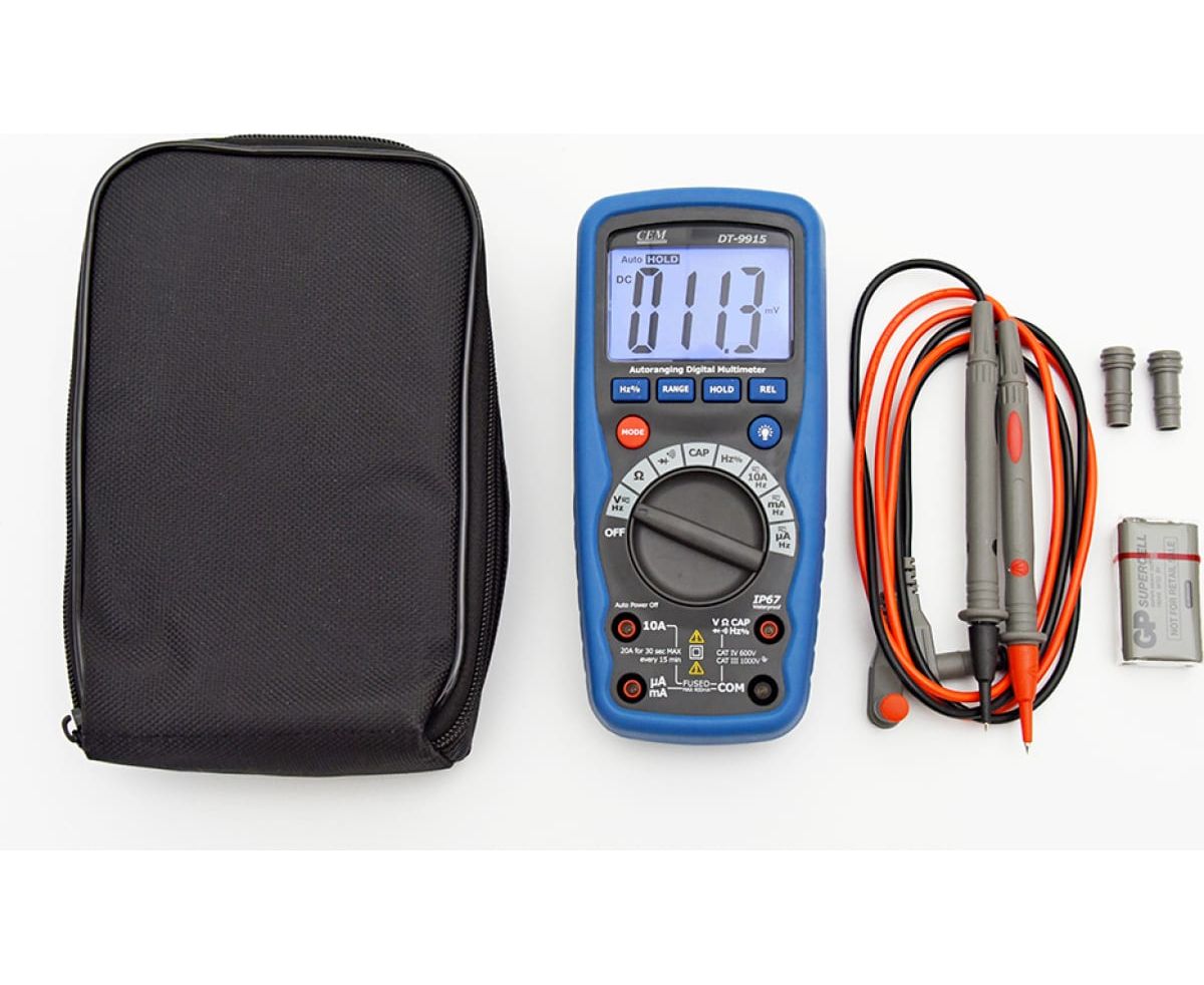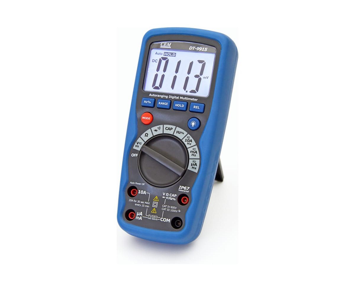 Мультиметр СЕМ DT-9915 482018 поставляется со всем необходимым для проверки правильной работы электроцепи. Контрастный ЖК-дисплей с 4000 отсчетов обеспечивает комфортное считывание показаний. Максимальное значение напряжения составляет 1000 В. Полярность подключения элементов цепи определяется в автоматическом режиме.