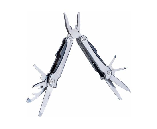 длинногубцы, плоскогубцы, кусачки, нож, крестовая отвертка, малая плоская отвертка, пила, консервный нож, открывалка для бутылок, средняя плоская отвертка, малый резак, большая плоская отвертка с надфилем